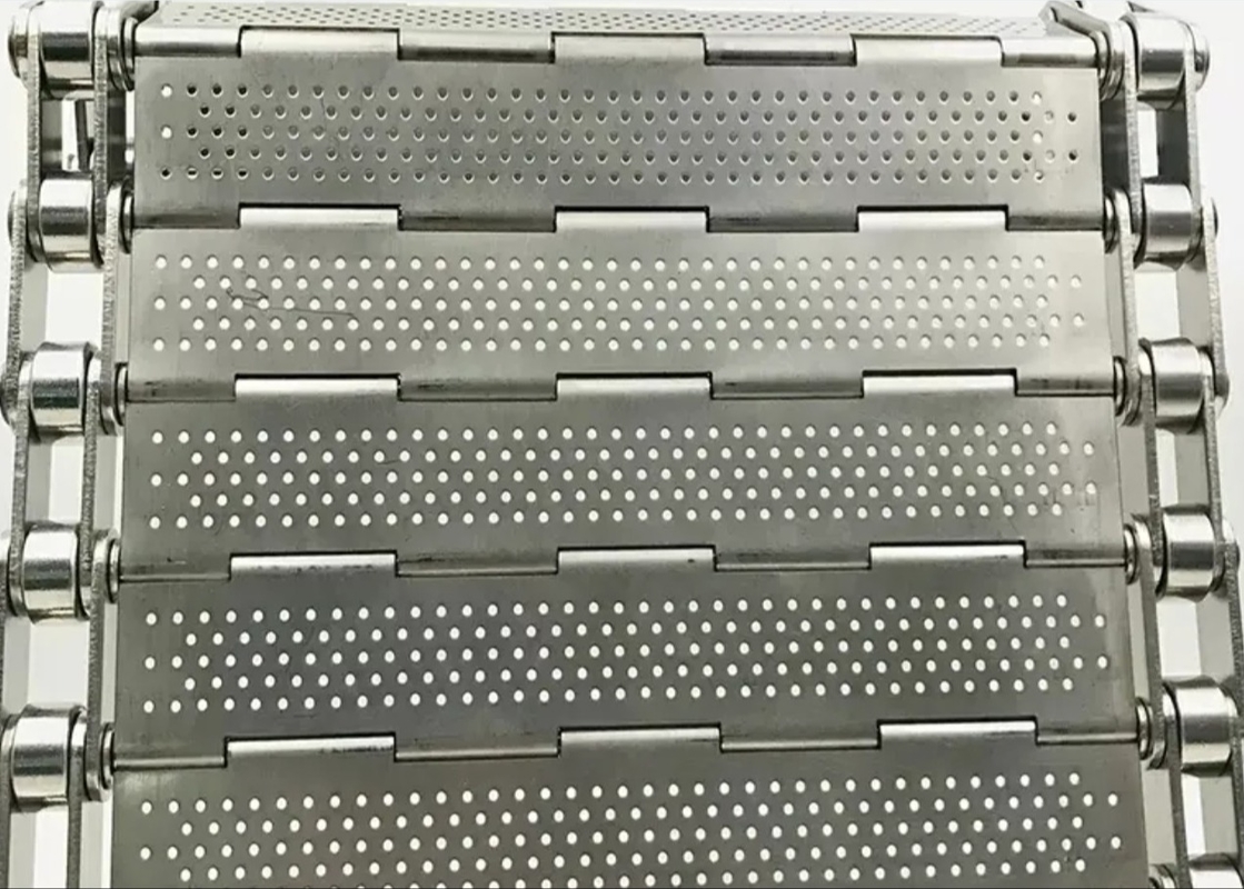 De Zware Belasting Metalen Plaat Transportband Draadgaasband heeft een lichtgewicht maar extreem sterk ontwerp, geconstrueerd uit roestvrijstalen plaat.