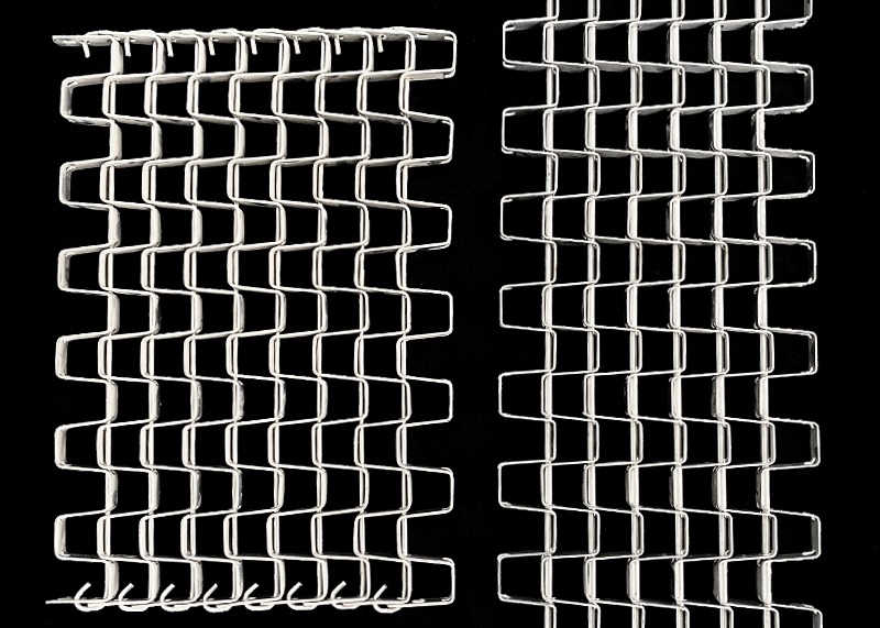 Honingraat transportband heeft vele kenmerken. Zoals Groot open oppervlak voor uitstekende luchtcirculatie, Optionele zijplaten, verstevigingsschakels en meenemers, Sterke rand voorkomt haken of vangen, zelfs als er transportband uitsteeksels zijn. Weinig onderhoud